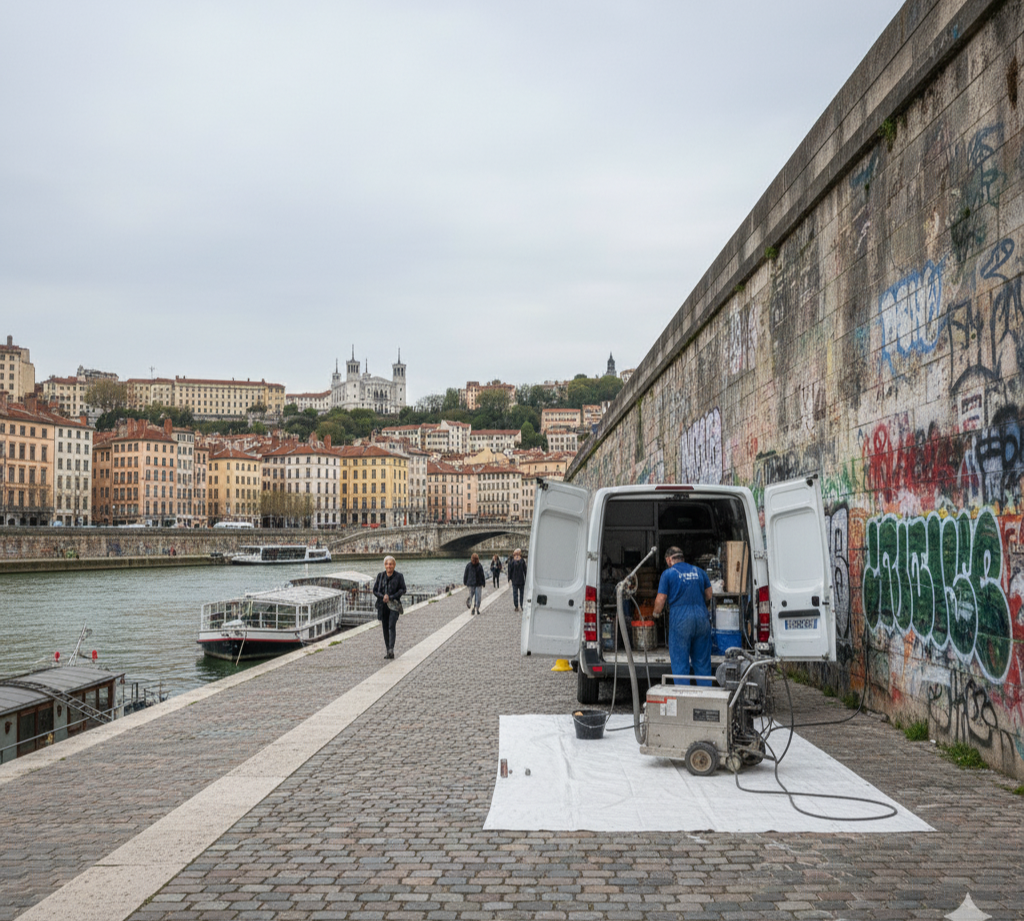 Découvrez l'efficacité de nos techniques professionnelles de nettoyage de tags et graffitis sur façades, murs et surfaces dégradées à Lyon et sa métropole
